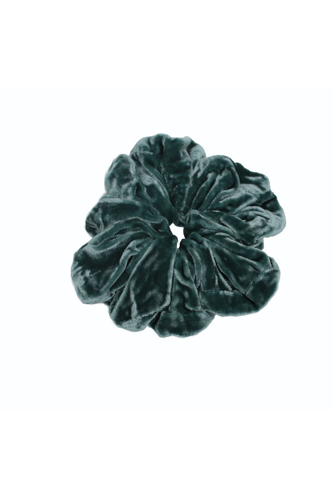 Our Teal Velvet scrunchie is made from fabric remnants of our Fall 2020 collection!