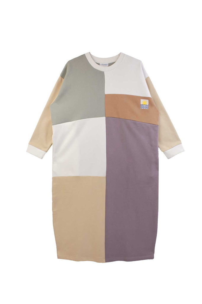 Long sleeve, oversized straight cut midi sweatshirt dress with side pockets.