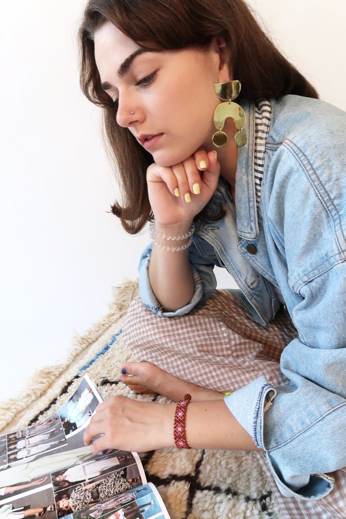 Modern Weaving's "Moon Dancer" earrings are handcrafted in LA from semi-polished brass with sterling silver posts. Hypo Allergenic.