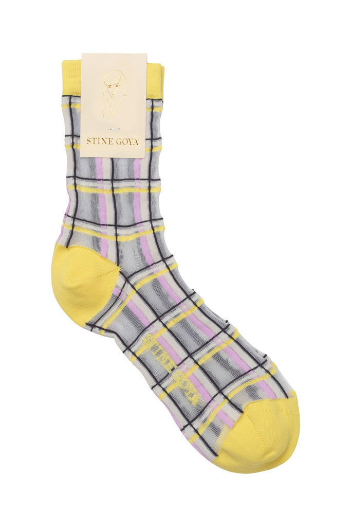 Crafted from sheer ribbed knit with reinforcements at heels and toes. All-over checkered print.
