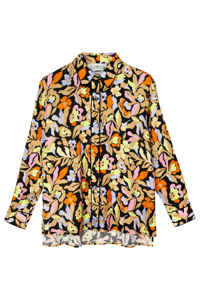 The Manifest Top is a long-sleeve button down top with a relaxed shoulder and easy fit. Piping at the button placket and cuffs. The top has a slightly longer length at back with the hem hitting at the low hip and side vents. Crafted from breathable TENCEL™ Luxe with silky twill finish, in custom artwork print Lucida.
